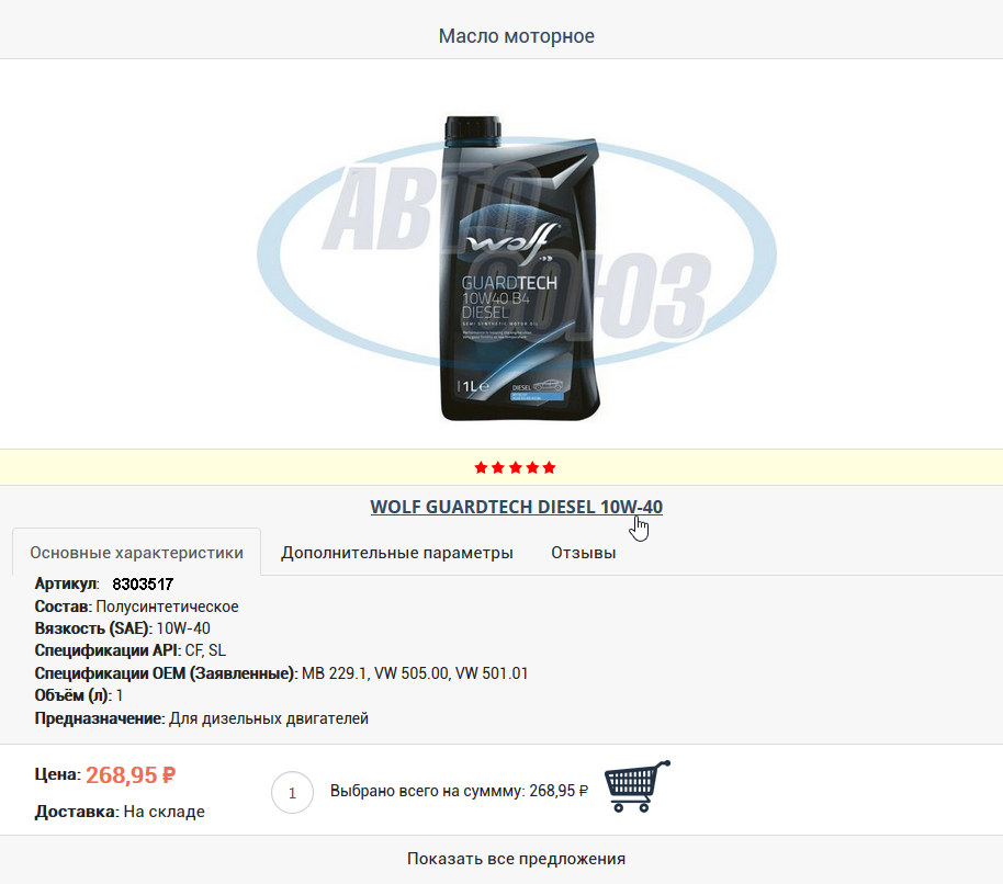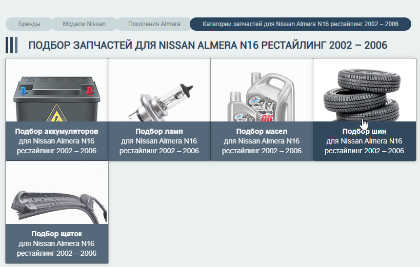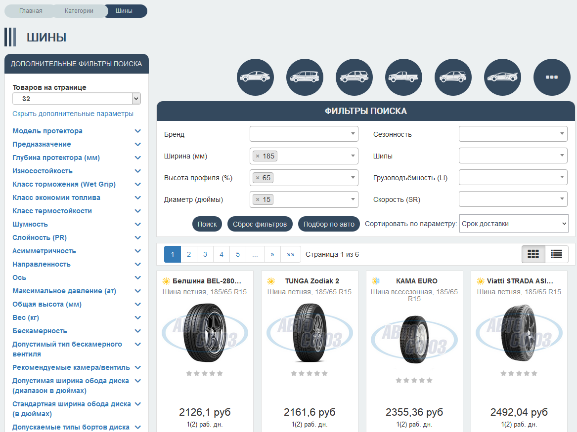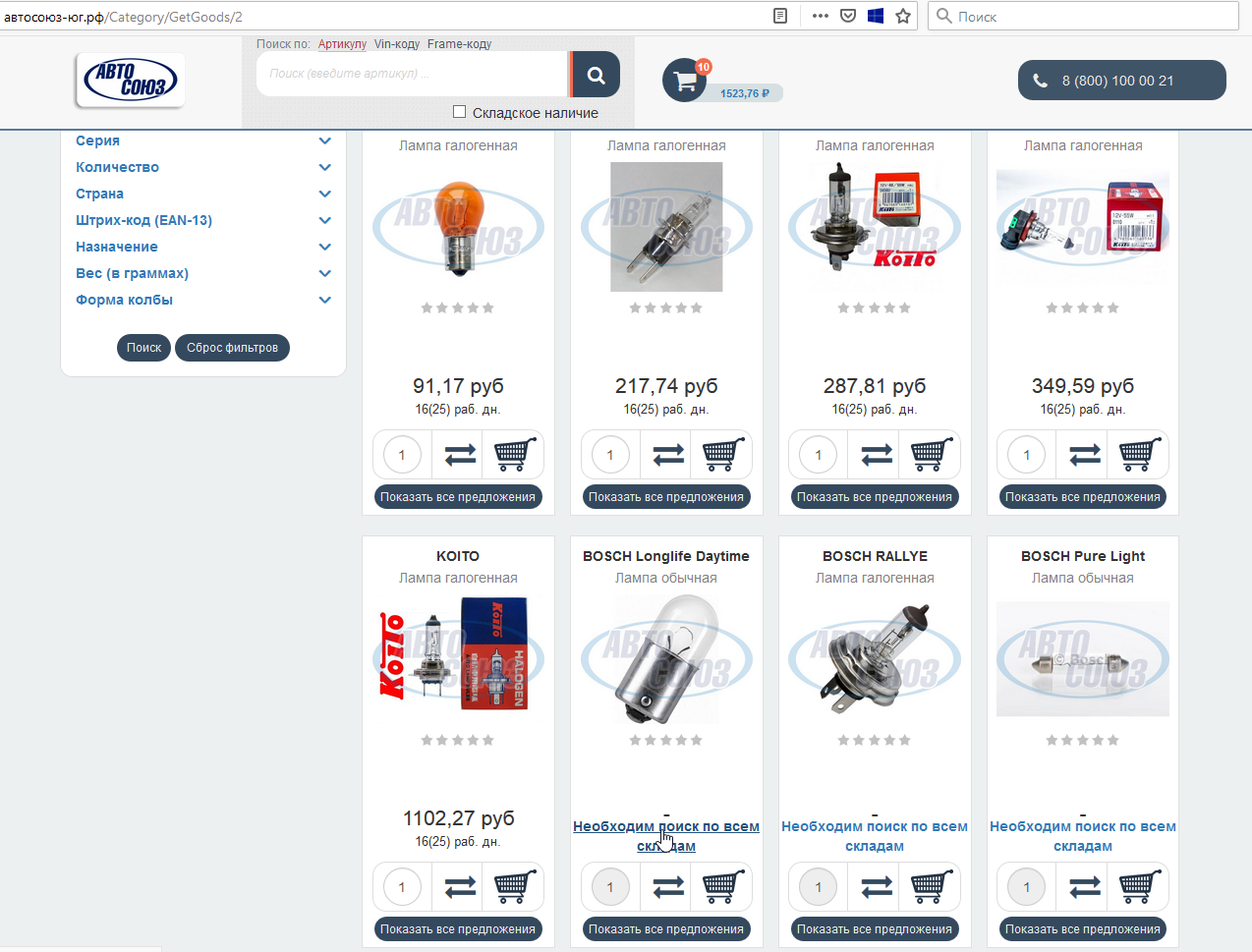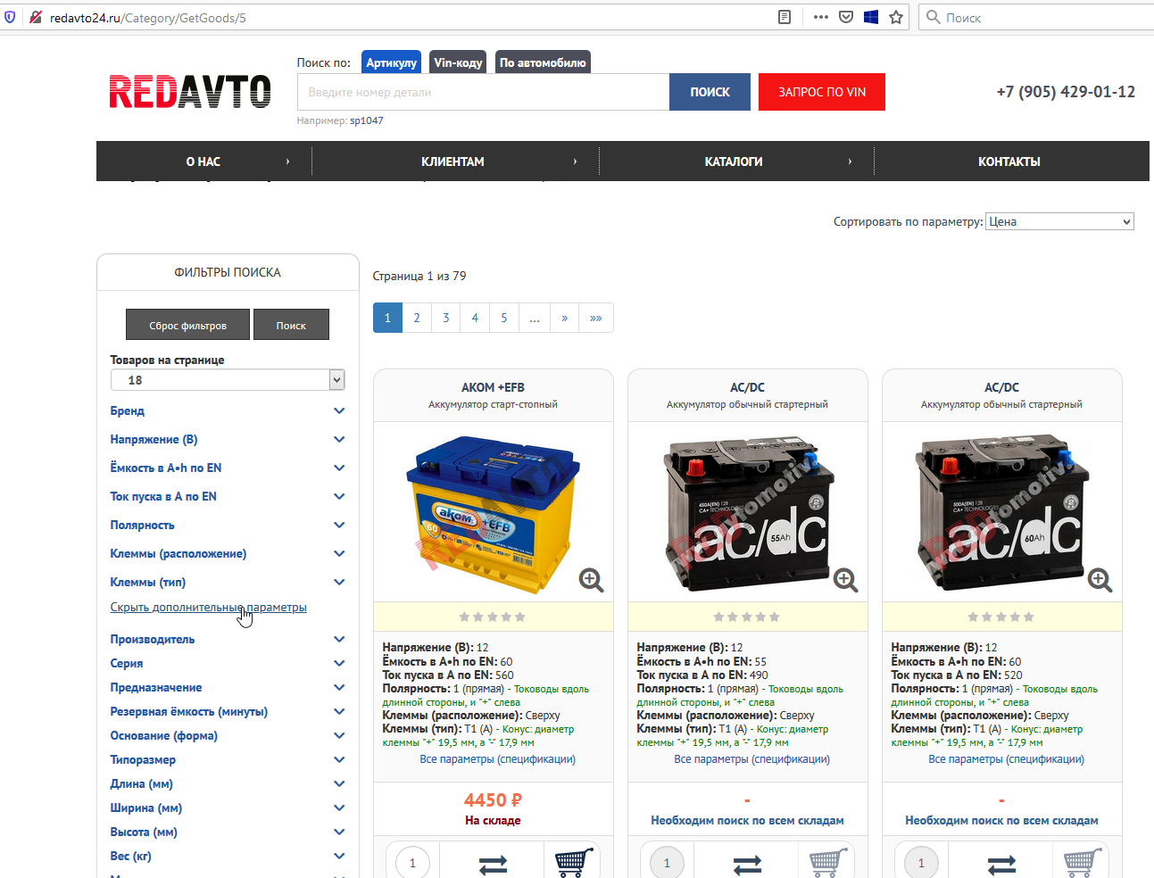 Ну и напоследок стоит заметить, что вид тех или иных элементов каталога подбора по параметрам частично зависит от вёрстки сайта. Например, на этом сайте фильтры, отображение их деления на основные и дополнительные, вид малых карточек и другие детали выглядят совсем по другому: