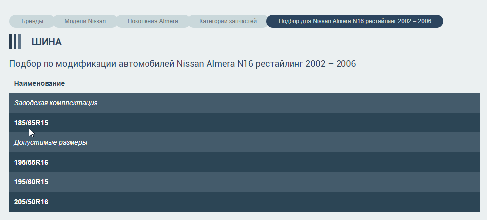 Например, для шин здесь есть специальные “Конвертер типоразмеров”, “Шинный калькулятор” и очень впечатляющий и познавательный модуль описания параметров, сделанный с помощью Macromedia (Adobe) Flash: