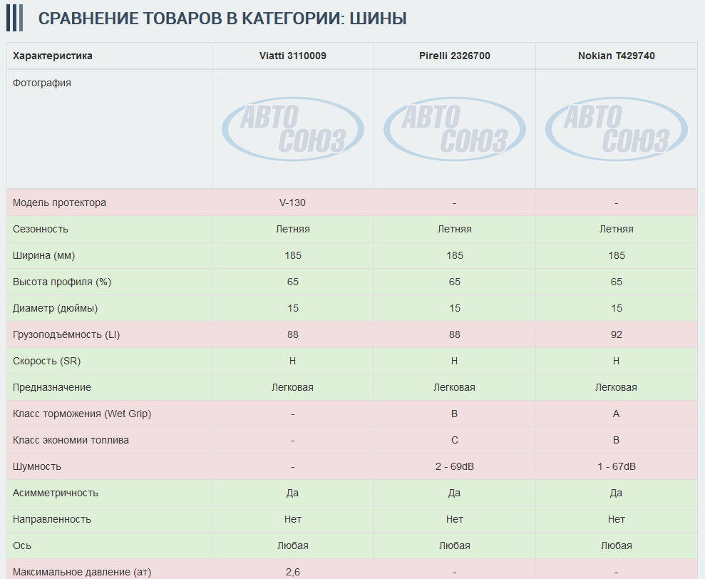 Теперь вам будет понятно, почему в данной тройке шина Nokian самая дорогая — потому что более грузоподъёмная и менее шумная. К тому же у неё самый лучший класс торможения и лучше класс экономии топлива. Переплатить за такую шину всего несколько сот рублей не грех! Здесь зелёным выделяются одинаковые параметры и на них не нужно обращать внимания, а различающиеся выделяются красным и они как раз представляют особый интерес. Если в какой то из ячеек таблицы сравнения стоит прочерк, то это означает, что на момент заполнения каталога не было доступной информации по данному параметру данной шины. Если процедура сравнения сумела сориентировать вас в выборе шин, то самым разумным будет тут же в таблице результатов сравнения положить их в корзину (пока они ещё есть на складе). Для этого в конце таблицы есть соответствующие кнопки.