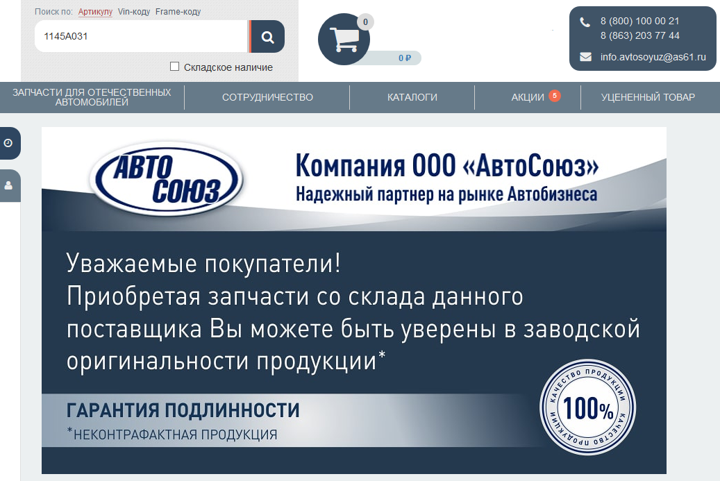 можно увидеть, что модуль “Акции” применяется для того, чтобы указать пользователям, что продукция данного бренда у данного поставщика подлинная. При нажатии на указанную выше пиктограмму-кнопку выходит полная информация по “Новости-Акции”, на самом деле представляющая собой просто информационный баннер: