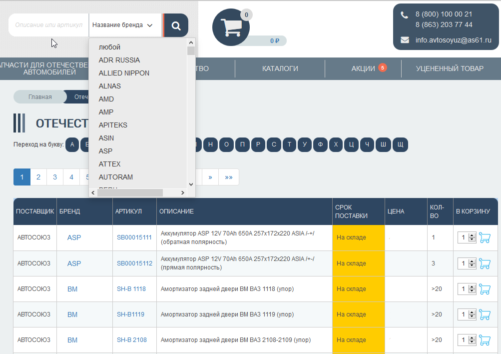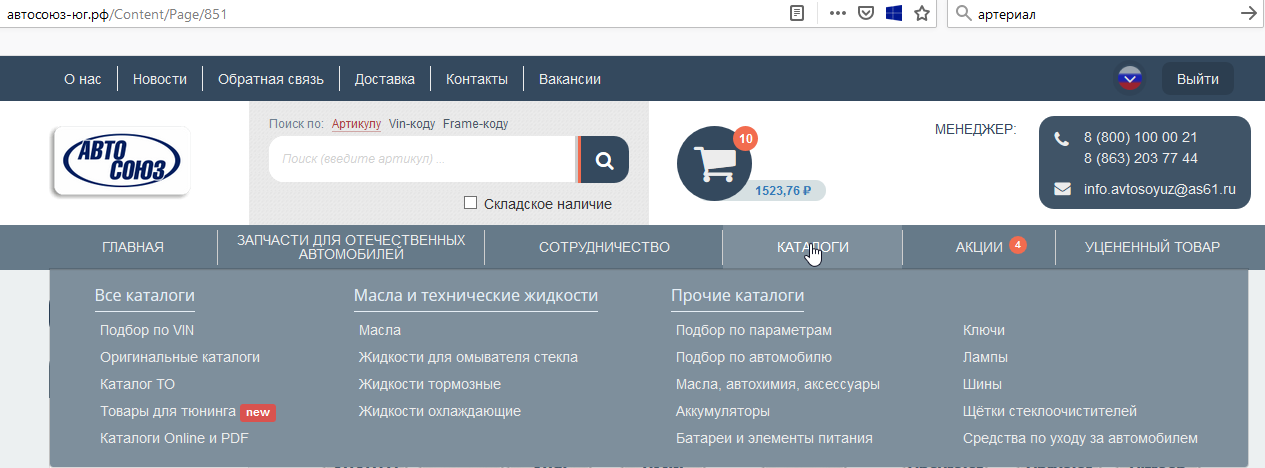 Итак, мы закончили краткое описание работы всех инструментов, представленных под кнопкой “Каталоги” на сайте http://автосоюз-юг.рф