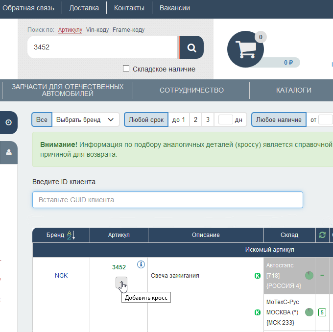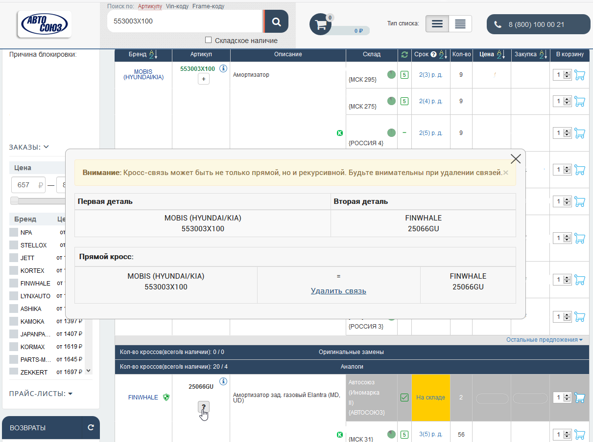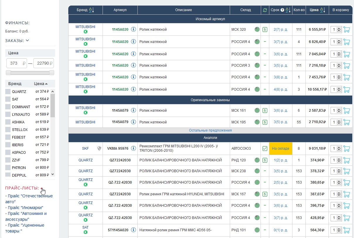 - при желании, нажав на артикул всегда можно перейти к стандартному модулю поиска по артикулу.