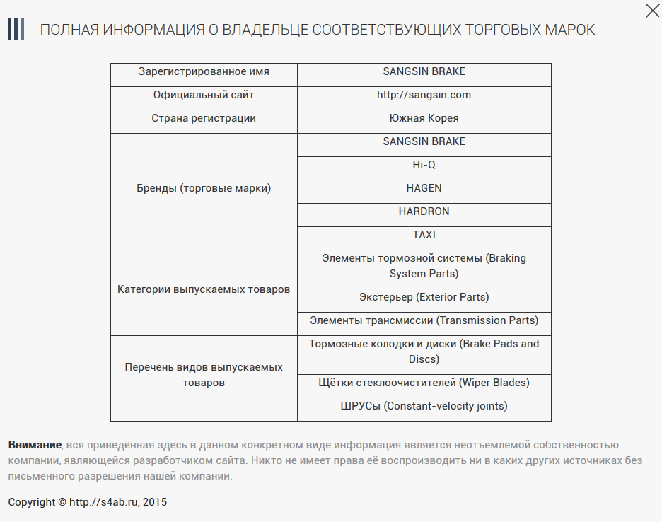 Закрыть его можно либо стандартно мышью нажатием на крестик вверху справа, либо клавишей “Esc”. Данная информация заполняется контент-менеджерами проекта S4AB в пункте “Описание брендов” главного меню ПУПа: