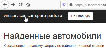 Здесь по кнопке “Оригинальный каталог” мы сразу переходим в модуль поиска по VIN-коду или Frame-номеру. В том случае, если в соответствующем каталоге не найдётся указанного VIN-кода, как для второго автомобиля из вышеприведённого снимка с экрана , то появится такое окно:
