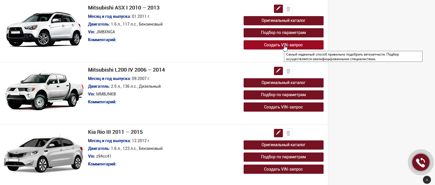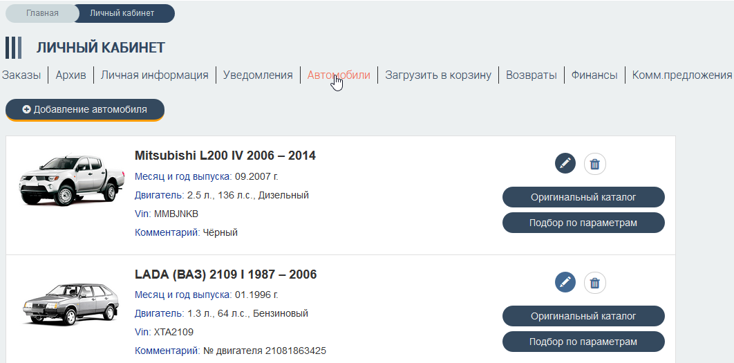 Кнопка корзины позволяет удалить автомобиль из списка в модуле “Гараж”. Удаление происходит безвозвратно. Если нужно будет восстановить автомобиль в гараже, то придётся создать его заново. Если у вас розничный интернет-магазин, то в модуле гараж будет ещё одна кнопка: