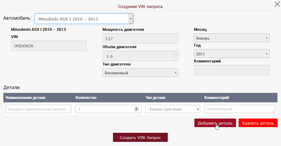 Кроме того, происходит создание самого VIN-запроса, который можно увидеть в двух местах: