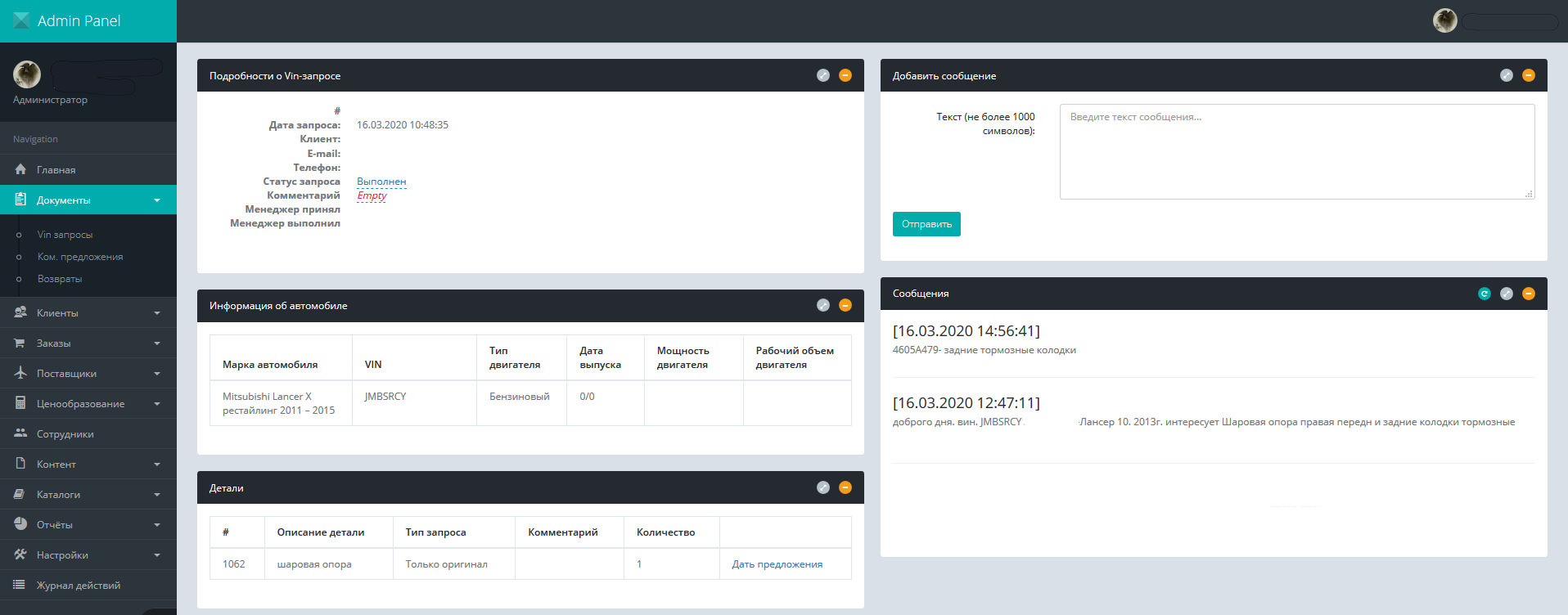 - в списке меню “Документы—>VIN-запросы” ПУПа, доступном только менеджерам, которым предоставлено право обрабатывать VIN-запросы.