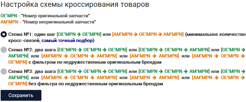 - выбор схемы кросс-связей товаров (переключатель в нижней части экрана):