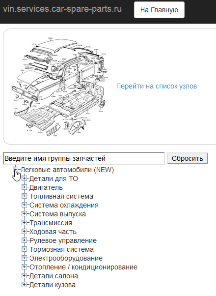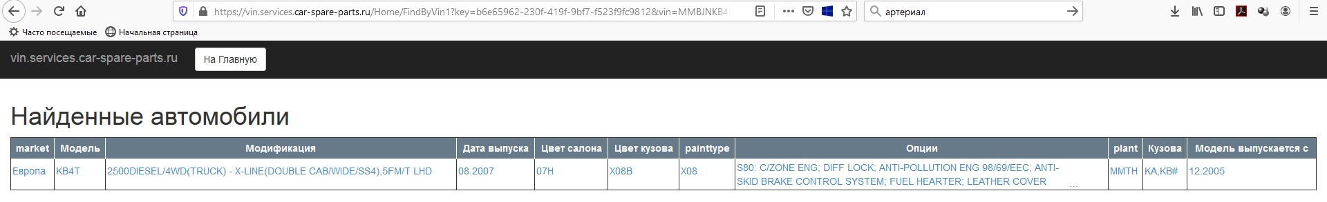 ввести VIN-код или Frame-номер (в зависимости от выбранного модификатора) в строке поиска и получить результат в виде, подобном этому: